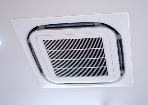 天吊形の業務用エアコンは、天井埋め込み形に比べて設置場所に制限が少なく、広い空間にも適しているため、店舗やオフィス、会議室などでよく使われている。また、天井に吊り下げられるため、壁や床を取らず、空間の有効活用ができる点も魅力的!メンテナンスもしやすく、フィルターの清掃や交換も比較的簡単に行えるため、衛生的な空気環境を保ちやすいです!